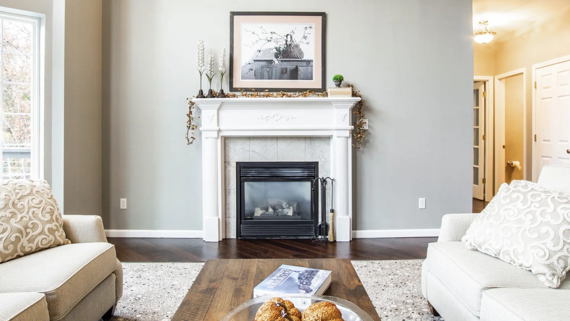 Make sure any fireplaces or wood stoves are in good working order and clean off and dust any mantles. Only replace items that aren't too personalized, and make sure that mantles aren't crowded with knick-knacks.